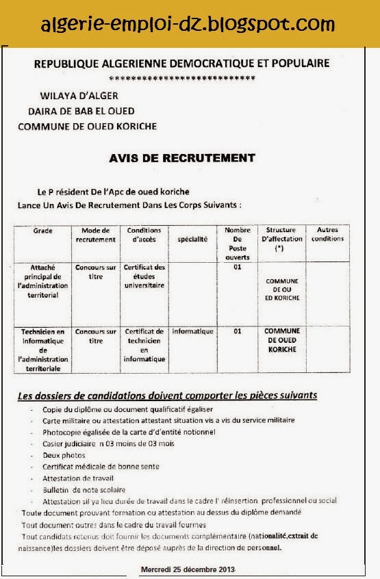 اعلانات التوظيف ليوم 25 ديسمبر 2013