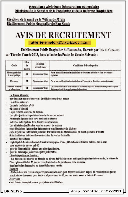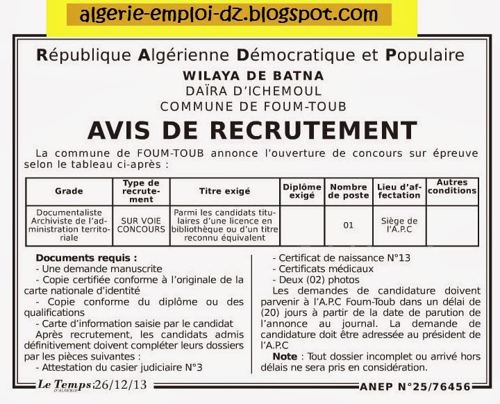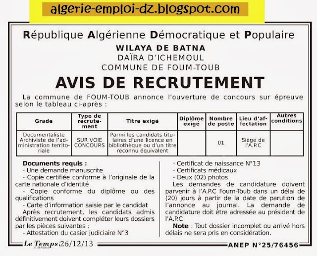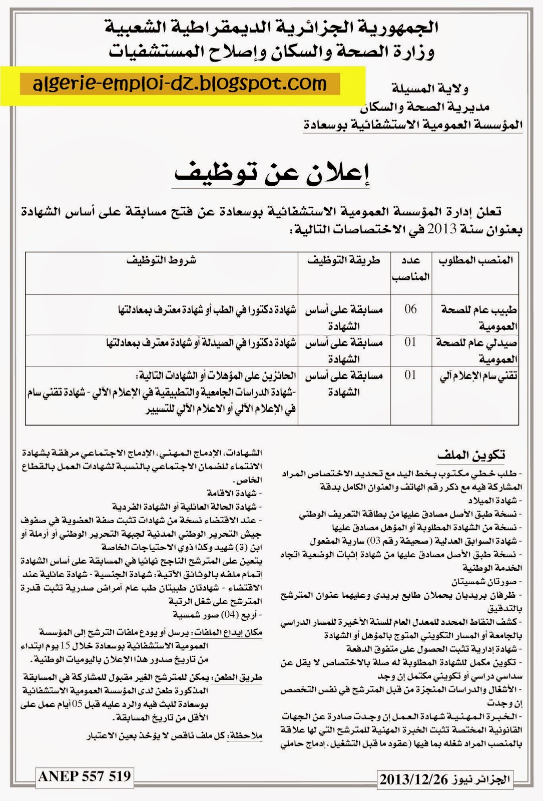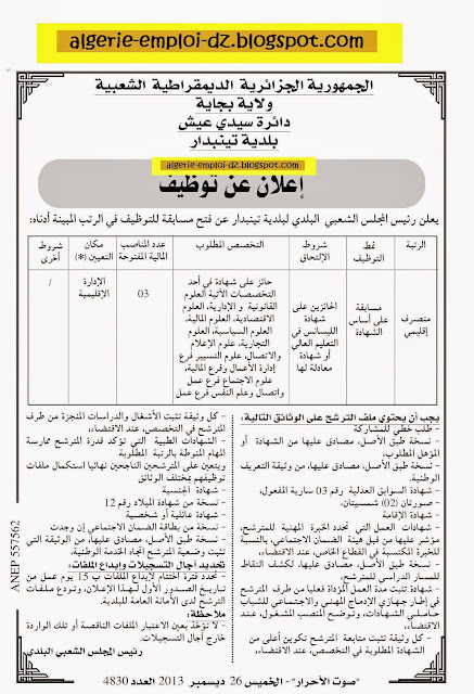 اعلانات التوظيف ليوم 26-12-2013..........بالتوفيق للجميع